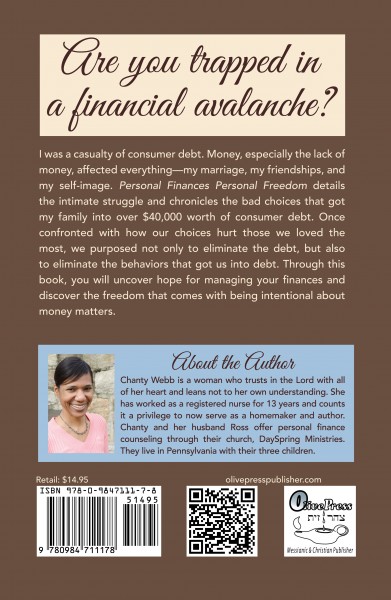 I was a casualty of consumer debt. Money, especially the lack of money, affected everything—my marriage, my friendships, and my self-image. Personal Finances Personal Freedom details the intimate struggle and chronicles the bad choices that got my family into over $40,000 worth of consumer debt. Once confronted with how our choices hurt those we loved the most, we purposed not only to eliminate the debt, but also to eliminate the behaviors that got us into debt. Through this book, you will uncover hope for managing your finances and discover the freedom that comes with being intentional about money matters.